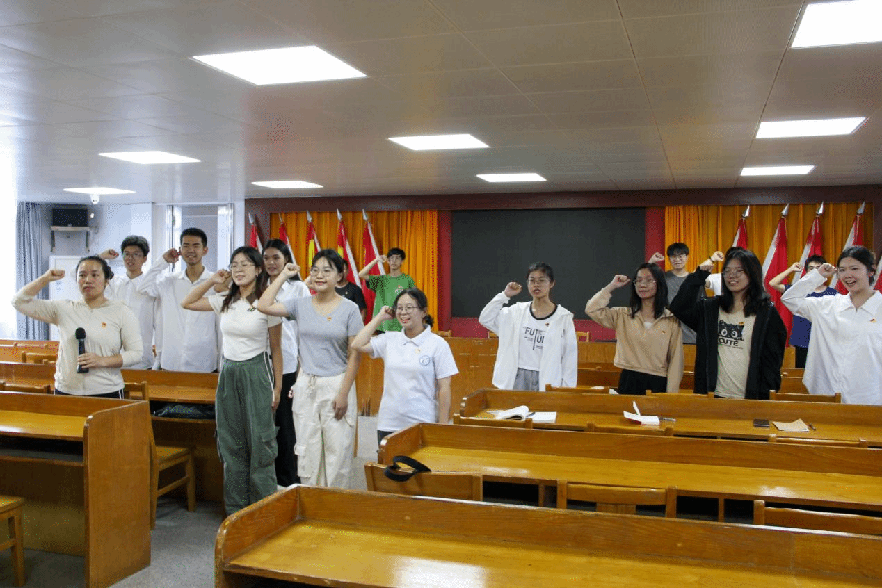 参观学习结束后,师生党员们在邓屋村党群服务中心会议室,开展了“弘扬科学家和教育家精神 挺膺担当强国使命”主题党日活动。师生党员重温入党誓词,并就参观历程、研习和传承莞籍“坪石先生”烽火逆行、学术报国的爱国精神,进行了交流分享。