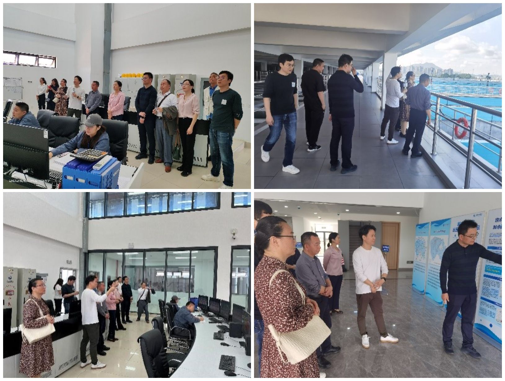 调研组受到了东莞市水务集团供水有限公司副总经理巢猛,松山湖水厂厂长丁子良、副厂长何孙胃等领导的热情接待。巢猛副总经理、丁子良厂长介绍了公司发展历程及现代化生产工艺和绿色发展理念,并带领调研组参观了生产现场。据介绍,松山湖水厂位于松山湖金多港区域,占地约291.8亩,总建筑面积约4.2万平方米,设计规模为110万立方米/日,一期工程总投资超28亿元,是一座现代化管理与技术的供水公司。水厂采用创新经济科学的“叠合式”设计布局,实现生产全流程数字化运维管控,是国内现代化水厂的示范标杆,出厂水标准达到全国领先水平。公司上下奋力保障全市供水安全,严把水源水、出厂水、管网水质量关,确保从源头到龙头的供水安全,让“优质水”“放心水”流进千家万户。