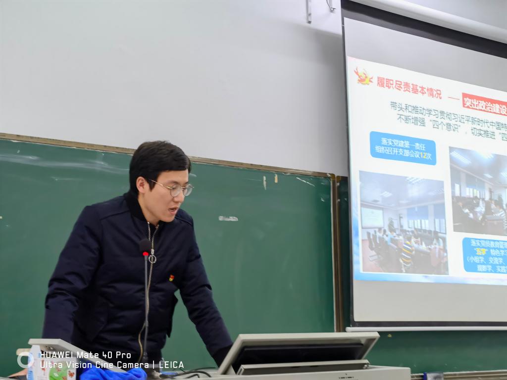 徐勇军介绍本次会议的目的、要求、参加大会人员以及支部书记述职发言顺序。本次被评议考核的对象是4个教师党支部和4个学生党支部。