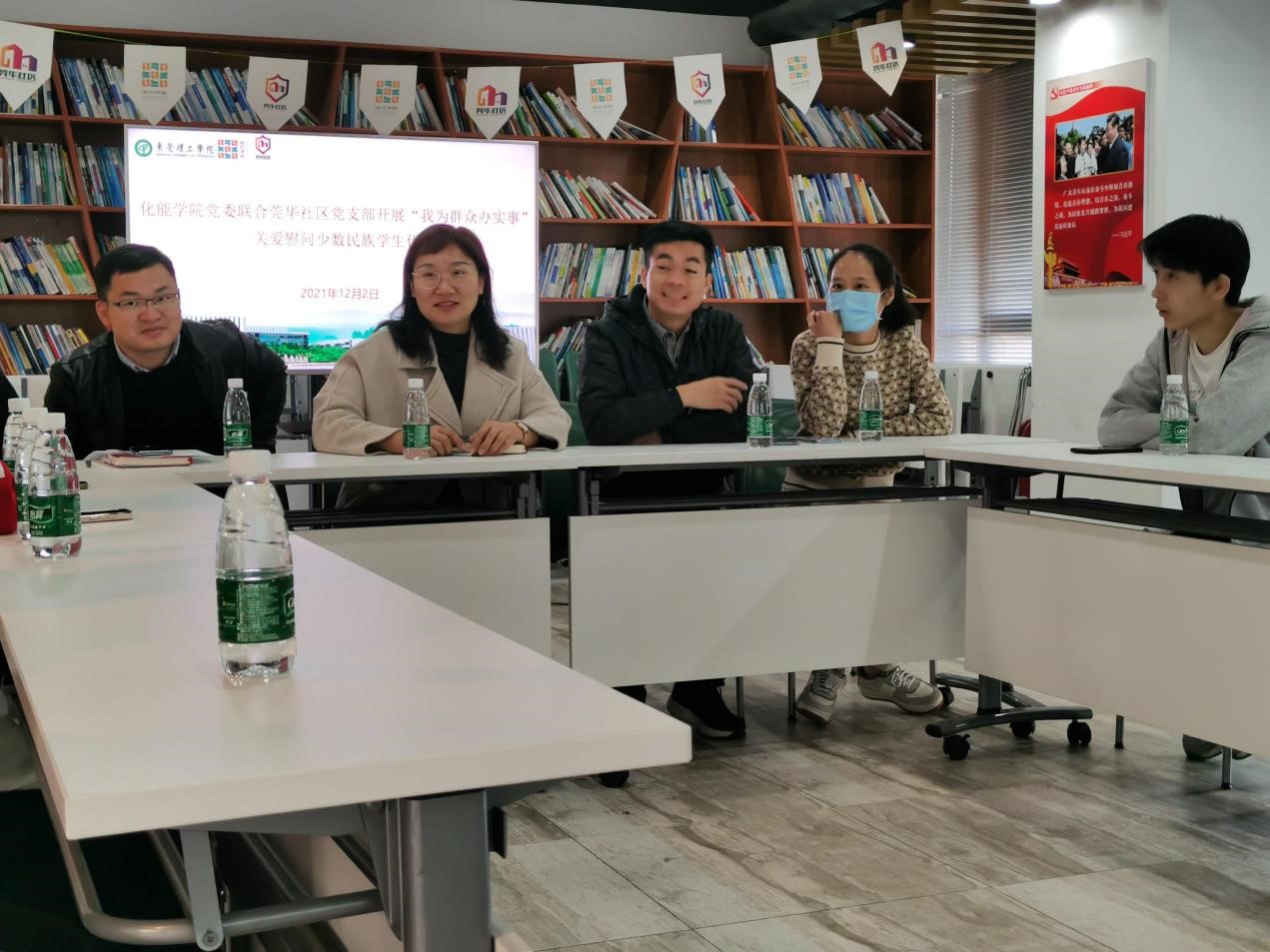 12月2日,化能学院党委联合莞华社区党支部在莞华社区党员活动室开展“我为群众办实事”关爱慰问少数民族学生代表,为他们送温暖。化能学院党委副书记、莞华社区党支部书记李利平,化能学院辅导员谢真葵、涂叶满、袁国彬、王馨以及社工范瑜参加此次活动。