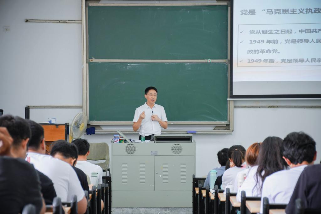 “在座的每位青年人,你们都是未来实现中华民族伟大复兴的参与者、奋斗者、奉献者!”9月27日,校党委书记成洪波以《学习“七一”讲话精神凝聚青春奋斗力量》为题,为2021级yl6776永利集团应用化学专业(化学工程与工艺卓越计划班)1班、2班及2021级生态环境与建筑工程学院环境工程卓越班学生上第一堂思政课。