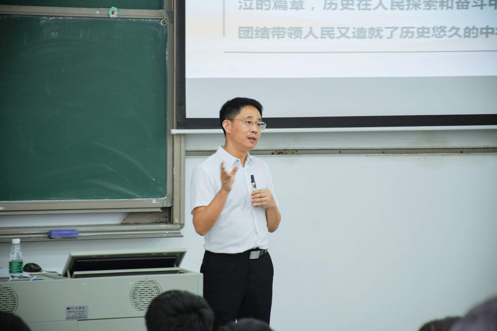 在课堂尾声,成洪波给同学们提出了两道课后思考讨论题:结合1840年鸦片战争以后的历史逻辑,谈谈实现中华民族伟大复兴的历史主题是如何产生的;结合马克思主义中国化的历史进程,谈谈对“时代是思想之母,实践是理论之源”这句话的理解。他希望同学们通过思考这些问题,更加了解我国历史进程,从中学习革命烈士、优秀楷模的精神,厚植爱国情怀,成为时代新人。