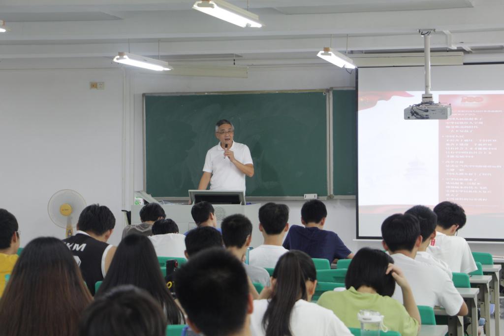 9月24日下午,化能学院党委书记夏勇为2020级电智学院99名学子作主题为“学习习近平总书记‘七一’重要讲话以史为鉴不懈奋斗”的思政第一课。