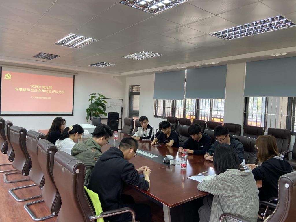 2021年3月11日下午,化能学院应化与食品学生党支部在12L103会议室召开了2020年度支部专题组织生活会和民主评议党员。会议由学生党支部书记张博主持,支部党员参加了此次本次大会。