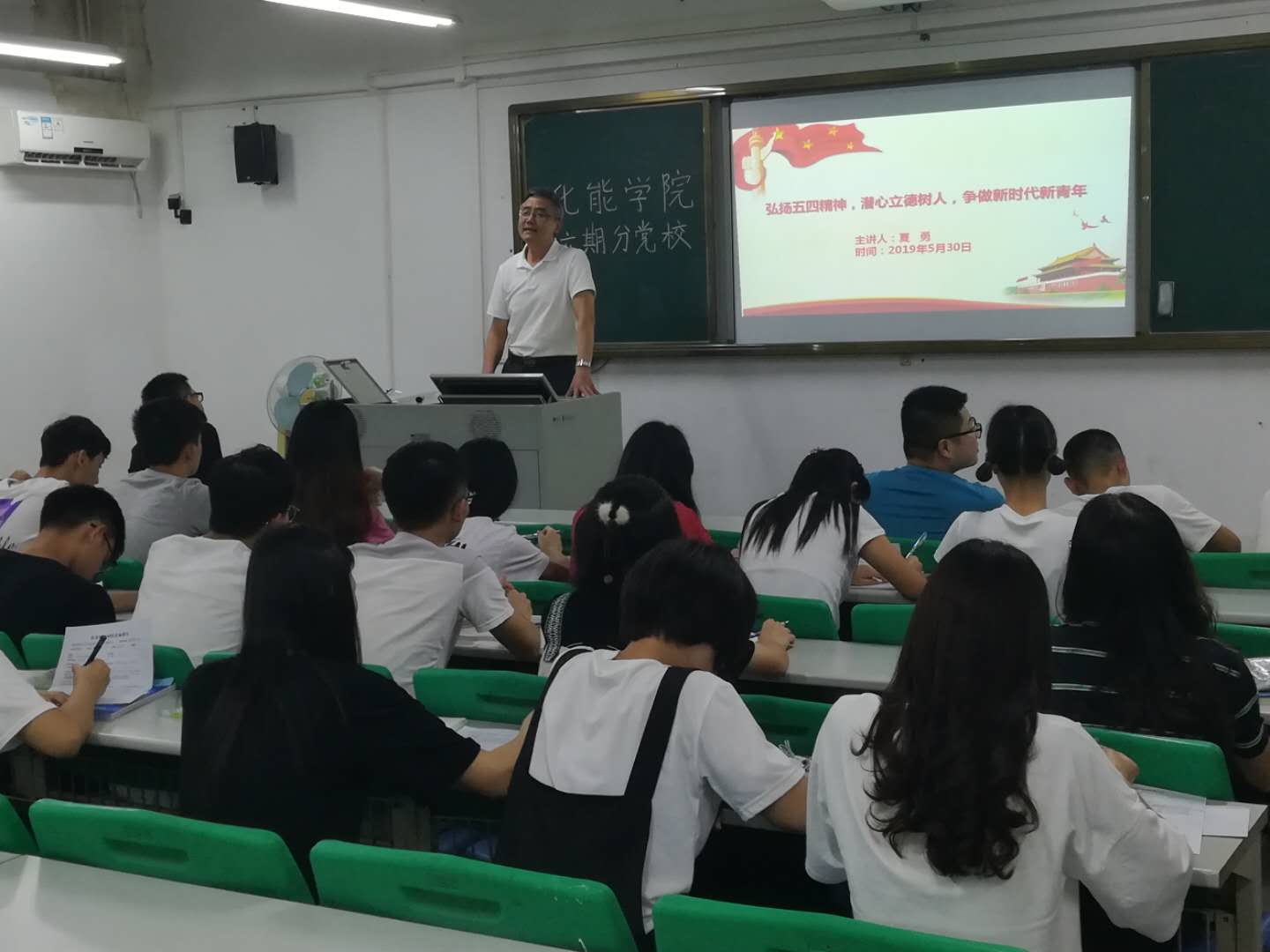 2019年5月30日晚,化能学院第六期分党校培训第五讲于教学楼7B311课室顺利进行,本次培训由化能学院党总支书记夏勇担任主讲教师,此次党课应到入党积极分子61人,实到52人。