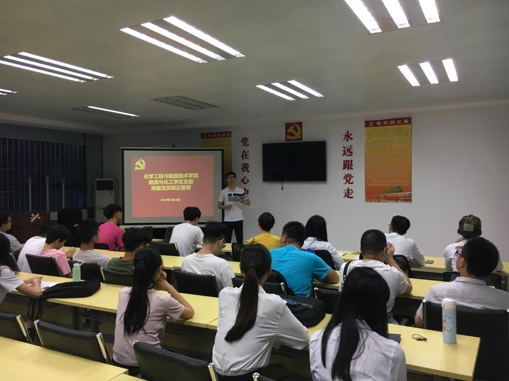 5月16日晚,化能学院能源与化工学生支部于12L102党建活动室顺利召开本学期预备党员转正答辩大会,会议由支部书记涂叶满主持,应化与食品学生支部书记张博、全体学生党员以及入党积极分子代表参加了本次会议。
