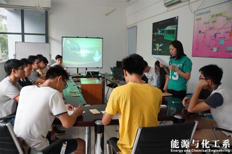 10月26日下午16:00,能源与化工系在系会议室12J304举行支部大会之接收预备党员会议。出席会议的人员有本系学生全体党员及发展对象,会议由党支部委员吴千庆主持。 党支部委员吴千庆宣读发展对象文件并请卢敏芝、覃万妍同志分别汇报个人对党的认识及入党动机。随后卢敏芝、覃万妍同志也介绍了个人履历,在发展期间的表现,表明自己成为预备党员的态度与决心并向党组织说明情况。 参会的入党介绍人分别介绍卢敏芝同志、覃万妍同志的发展情况并表明了自己的态度。紧接着大会通过举手投票方式全票一致同意卢敏芝同志、覃万妍同志成为预备党员。卢敏芝同志、覃万妍同志分别感激党组织的培养并表示会继续严厉要求自己,把党的精神发扬光大。 此次支部大会顺利吸收了两位学生党员,学生党支部的队伍又进一步得到壮大。