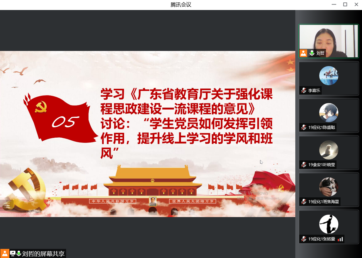 最后,支部成员学习了《广东省教育厅关于强化课程思政建设一流课程的意见》,并就“学生党员如何发挥引领作用,提升线上学习的学风和班风”展开了讨论,也就教师如何更好地开展课程思政建设纷纷发表建议和意见。