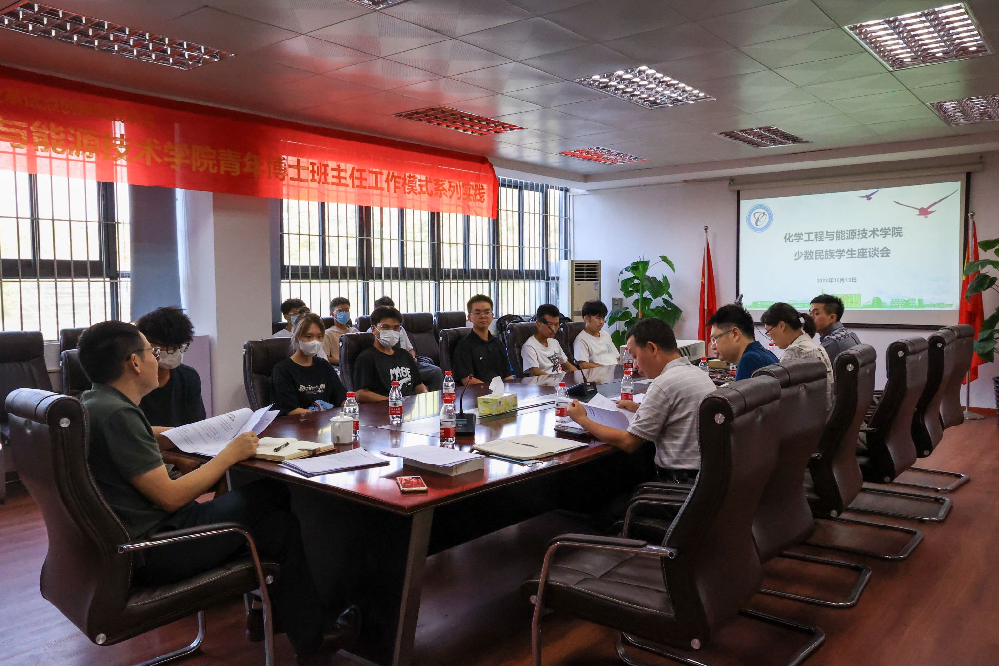 2022年10月13日下午,化能学院党委于12L103会议室召开少数民族学生座谈会。党委书记、院长徐勇军,党委副书记李利平,党委委员、副院长尹辉斌,副院长陈佰满,组织员姜蓉,政治辅导员谢真葵、王馨以及2021级、2022级少数民族学生出席了本次座谈会。