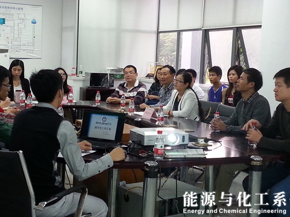 11月4日,能源与化工系在系会议室12J304举行2014年度辅导员考核大会,出席本次考核大会有学生处副处长张敏带领的第二考核小组,工作人员叶慧如,叶嘉文,我系主任徐勇军,党总支书记李纠,辅导员谢真葵,各班班主任以及学生代表。本次考核大会应出勤33人,实际出勤33人,达到出勤率。本次会议由学生处副处长张敏主持。 16:30,会议开始。主持人张敏说明考核程序与要求,接着辅导员谢真葵按照考核小组安排,进行5分钟述职总结。而后工作小组人员下发考核表,待每人完成表格后,工作人员收回表格,结束考核程序。 考核大会起到严格监督与要求辅导员工作,对辅导员工作的提升有促进作用。 学生出副处长张敏主持会议 辅导员谢真葵做述职报告