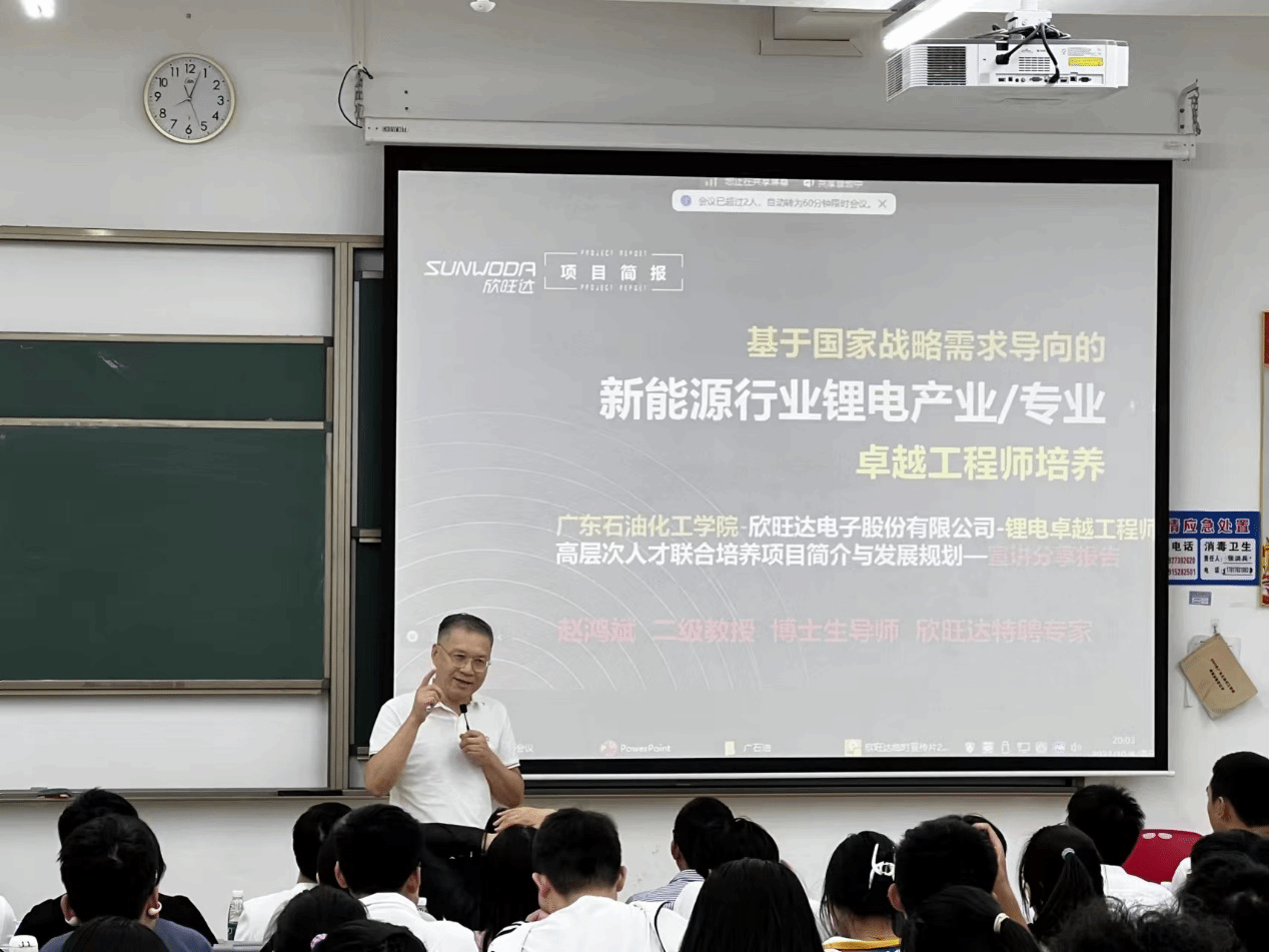 2023年10月8日,我校新能源现代产业学院(筹)共建企业欣旺达电子股份有限公司与广东石油化工学院举行锂电卓越工程师联合培养项目签约仪式,yl6776永利集团赵鸿斌教授受邀开展“锂电卓越工程师高层次人才联合培养项目”专题讲座。该联合培养项目的提出是基于6776永利集团开设锂电产业特色人才联合培养项目的成功经验,旨在向广东石油化工学院的师生介绍、推广教育教学新模式。