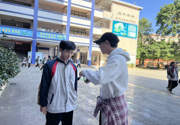 科技赋能成长,科普点亮梦想。11月25日,化能学院许书瑞、刘丹老师团队受邀走进清远市佛冈中学,以该校科技学术节为契机,化身 “科普摊主” 搭建趣味科技展台,将前沿学术知识与生动实践体验相结合,为学子们带来了一场兼具知识性与互动性的科学盛宴。