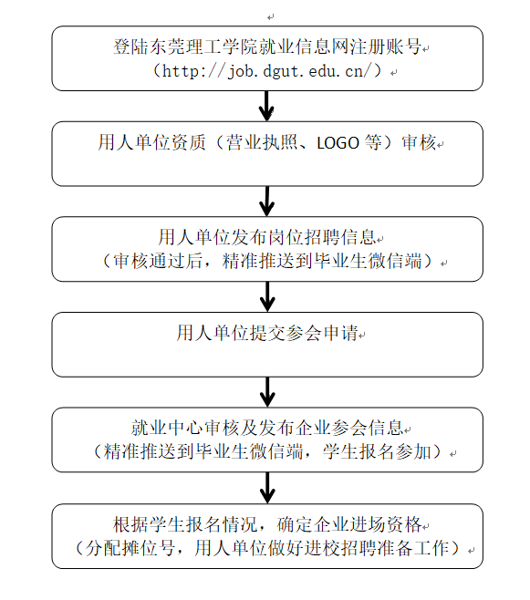 本次活动将提供线上线下同步招聘服务。各用人单位请于10月30日前登陆学校就业信息网(http://job.dgut.edu.cn/)【发布招聘信息】,报名【参加招聘会】;11月1日,学校将根据学生报名情况审核确定线下入场资格。