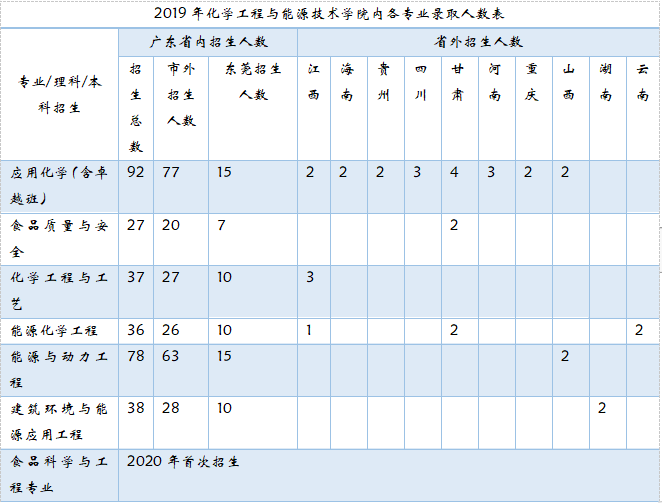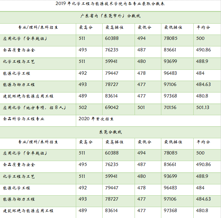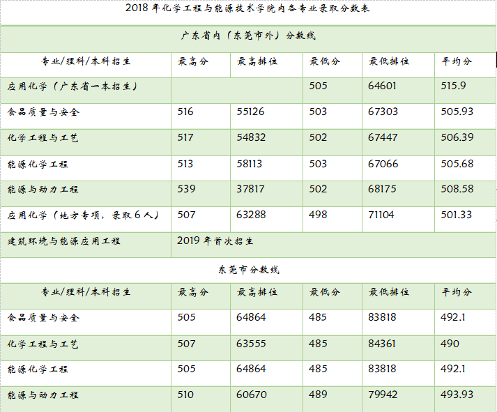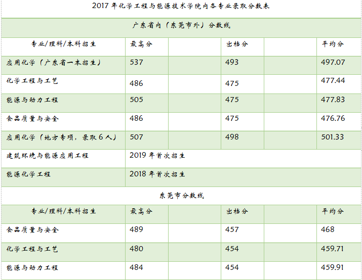 2017-2019年化能学院各专业录取分数