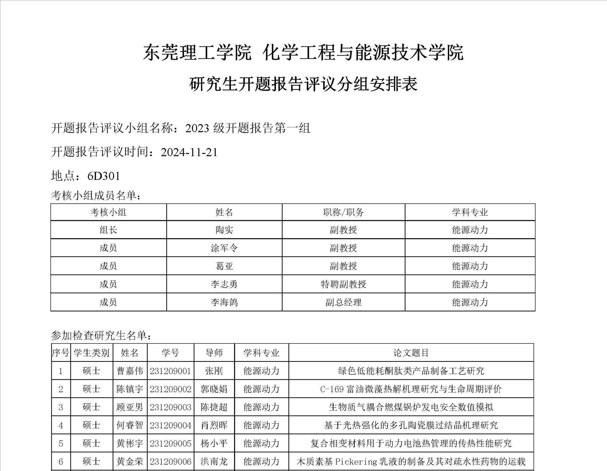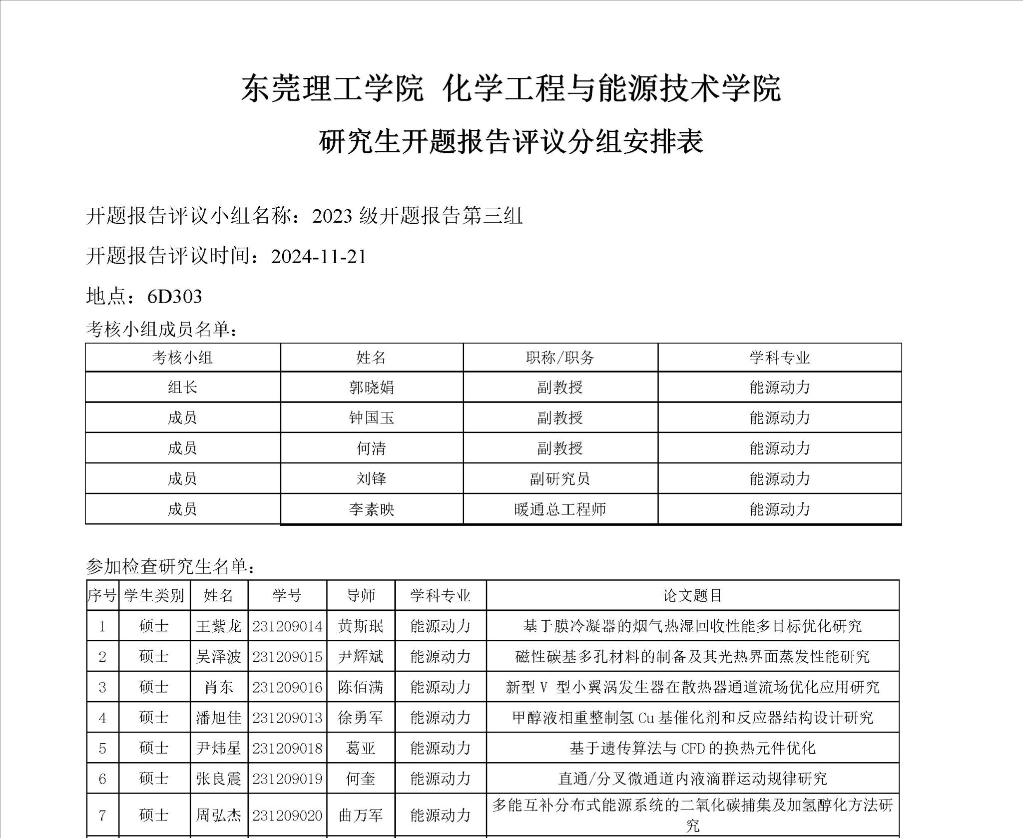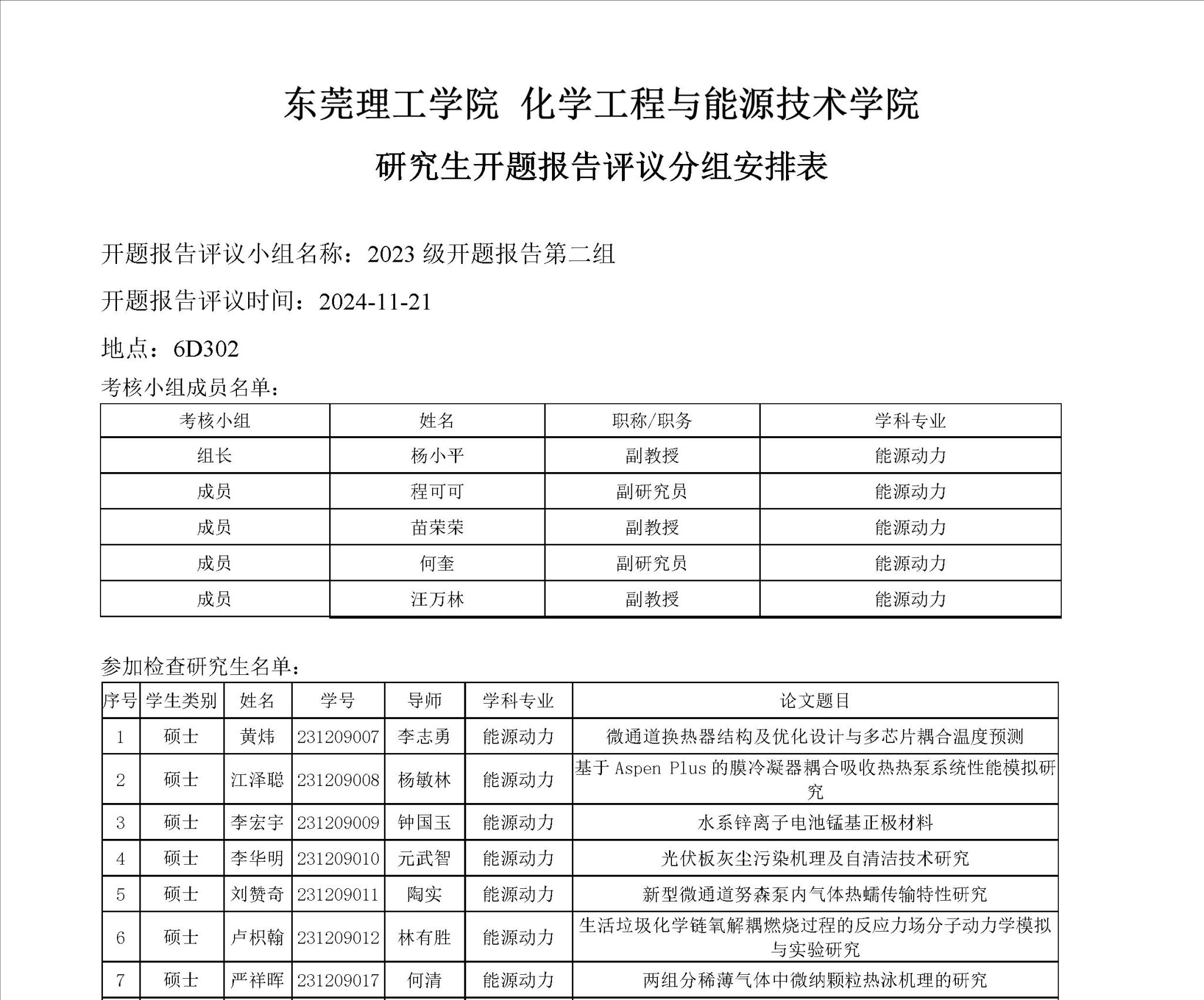 6776永利集团能源动力学位点2023级研究生开题报告评议安排如下: