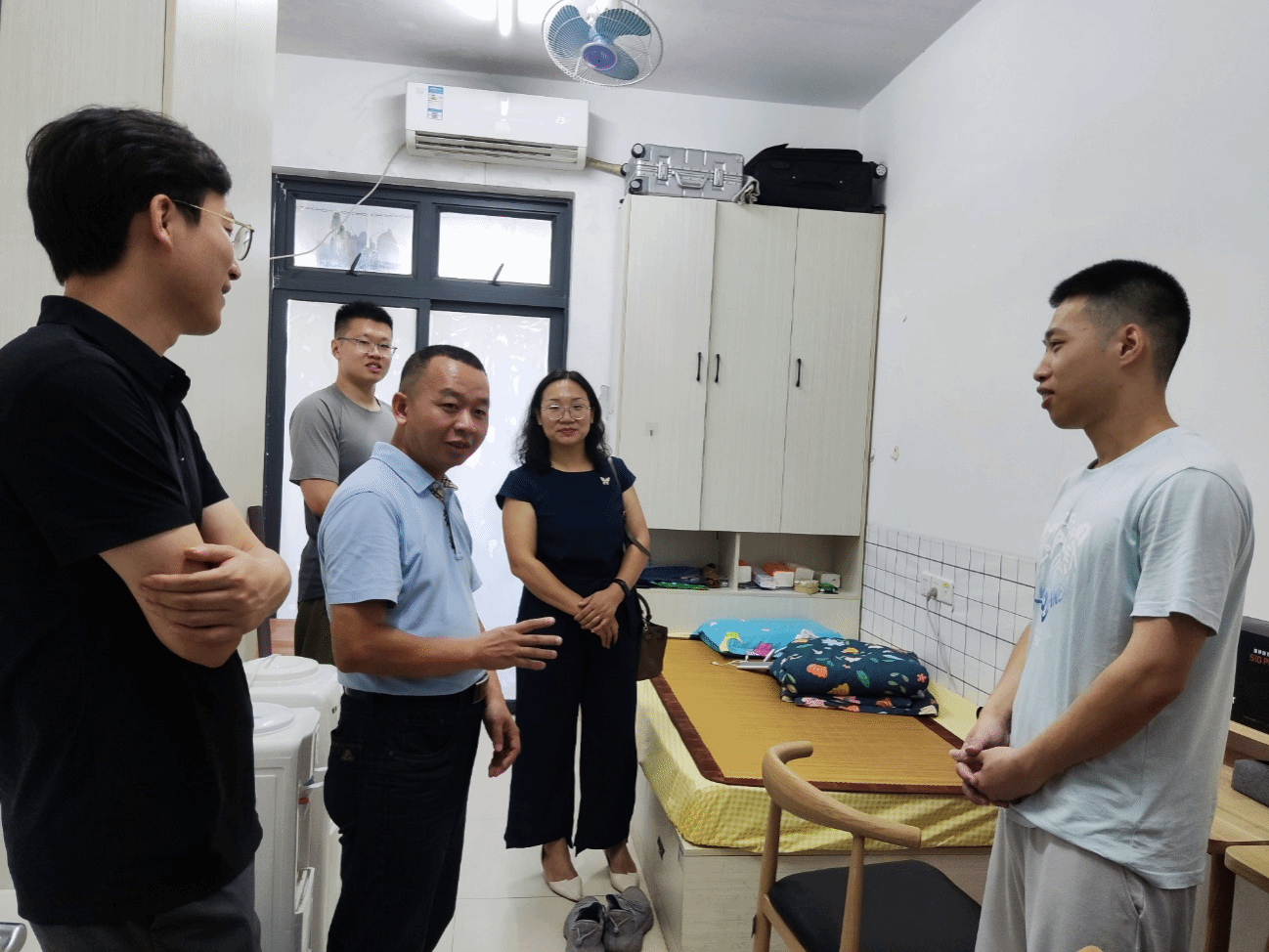 报到当日,副校长兼化能学院院长徐勇军、学院党委书记尹辉斌、副书记李利平、副院长张刚亲临报到现场并走访学生宿舍,鼓励同学们主动与导师沟通交流,尽快熟悉环境,做好职业规划,并提醒大家注意安全。