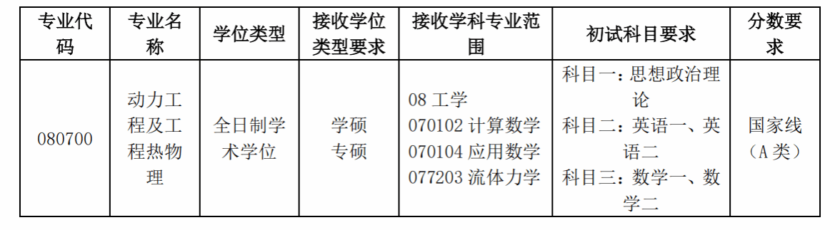 (三) 第一志愿报考专业与本学位点动力工程及工程热物理专业(专业代码:080700)相同相近,或初试科目与调入专业初试科目相同相近,具体见下表。