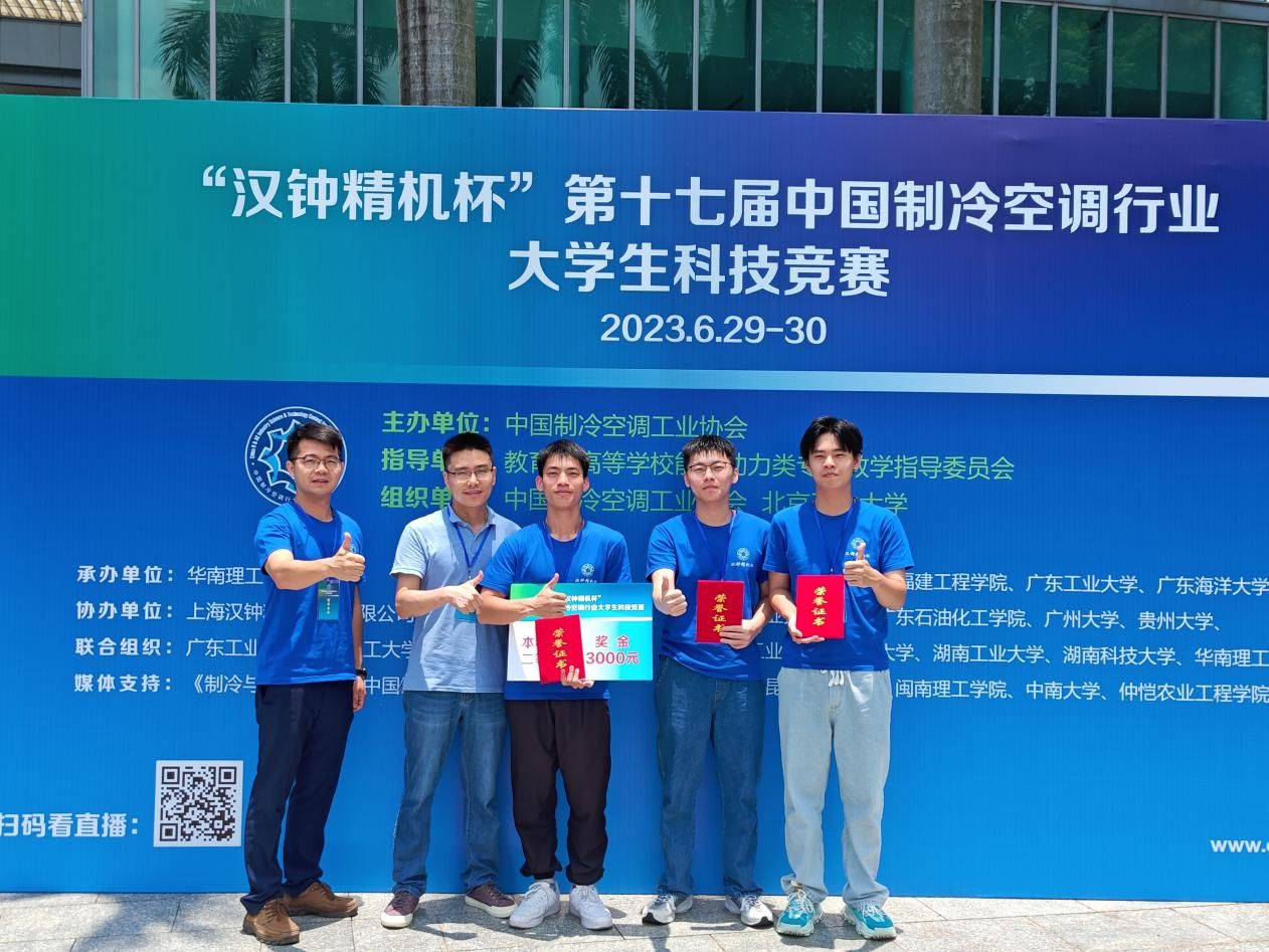 2023年6月30日,由中国制冷空调工业协会主办,教育部高等学校能源动力类专业教学指导委员会指导,华南理工大学承办的“汉钟精机杯”第十七届中国制冷空调行业大学生科技竞赛(华南分赛区)圆满落下帷幕。我校yl6776永利集团学子徐炜槟、廖浩良、陈永亮的参赛项目“一种可调节升降温速率的半导体恒温水槽”荣获二等奖。