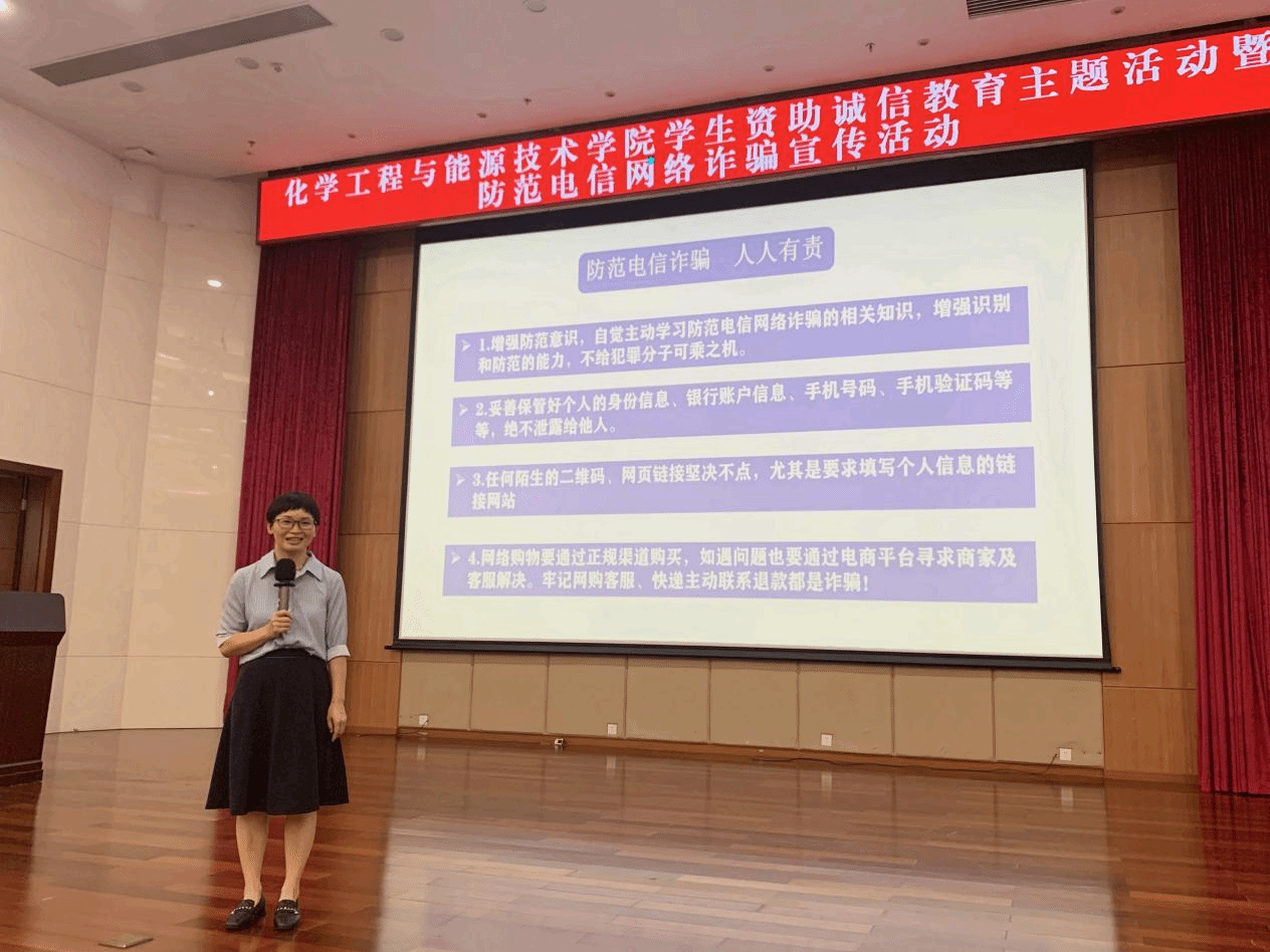 为进一步提高学生诚信意识,增强资助育人成效,同时不断增强安全防范意识,5月17日下午,化能学院在松山湖校区学术会议中心报告厅开展学生资助诚信主题教育暨防范电信网络诈骗宣传活动,学院2024届毕业生参加。
