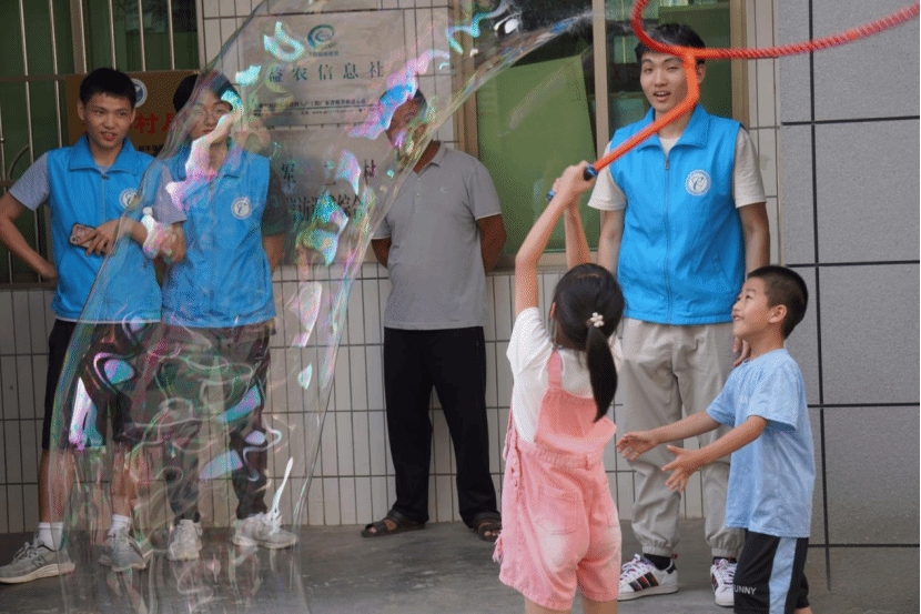 除调研与劳动外,实践队开展了2场“大手拉小手”——共读科学家故事主题读书会和一系列科普实验,通过通俗易懂的故事向小朋友们弘扬科学家精神,用简单有趣的小实验在小朋友心中播下科学的种子。