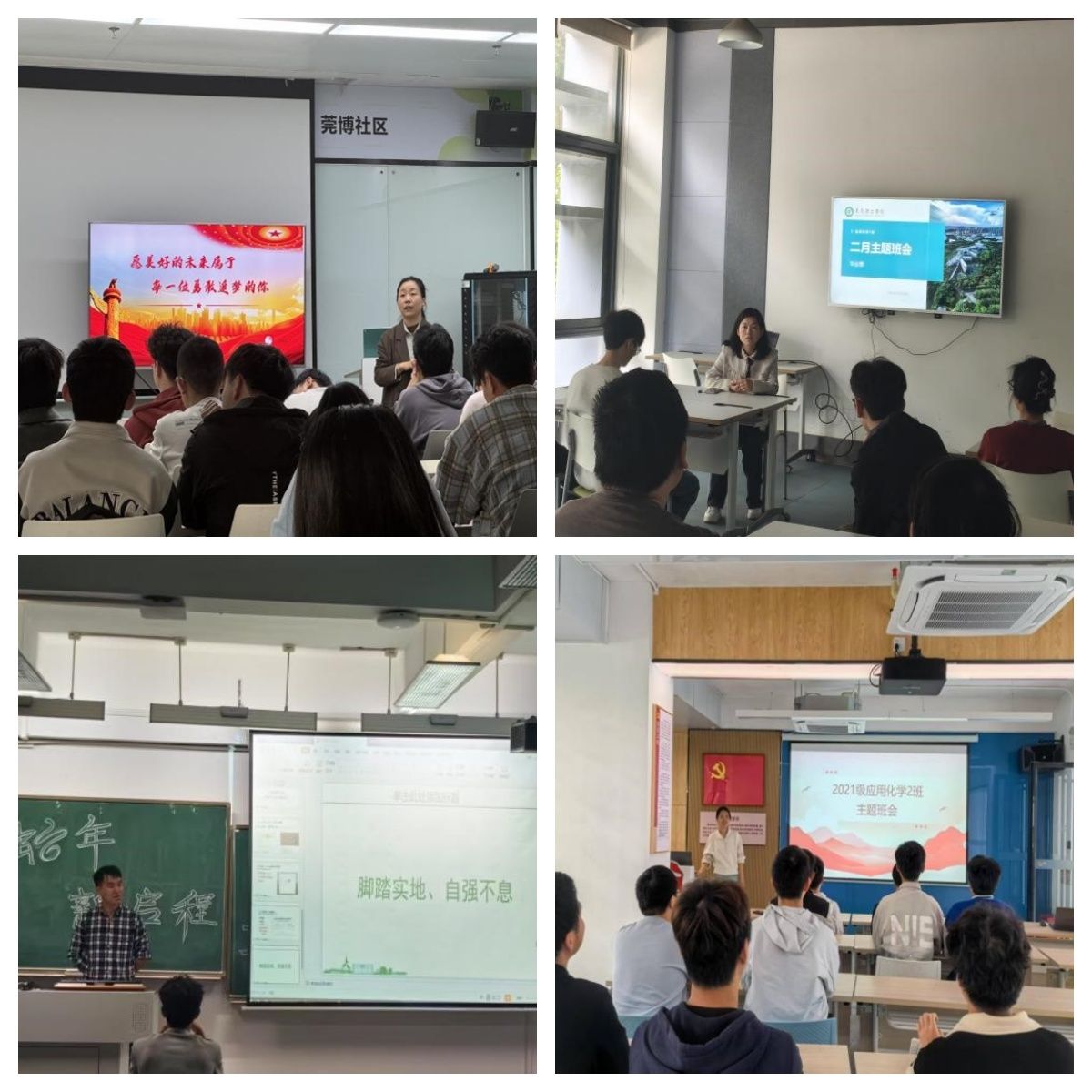 班主任依据年级、专业的特点,围绕思想引领、学业帮扶、行为规范、校纪校规、职业规划、安全教育、毕业生就业等主题,陆续开展系列主题班会活动。通过生动案例分析、互动答疑等形式,深入讲解与交流,为同学们上好春季学期“开学第一课”,帮助同学们快速调整学习状态,以饱满的热情投入新学期的学习生活。