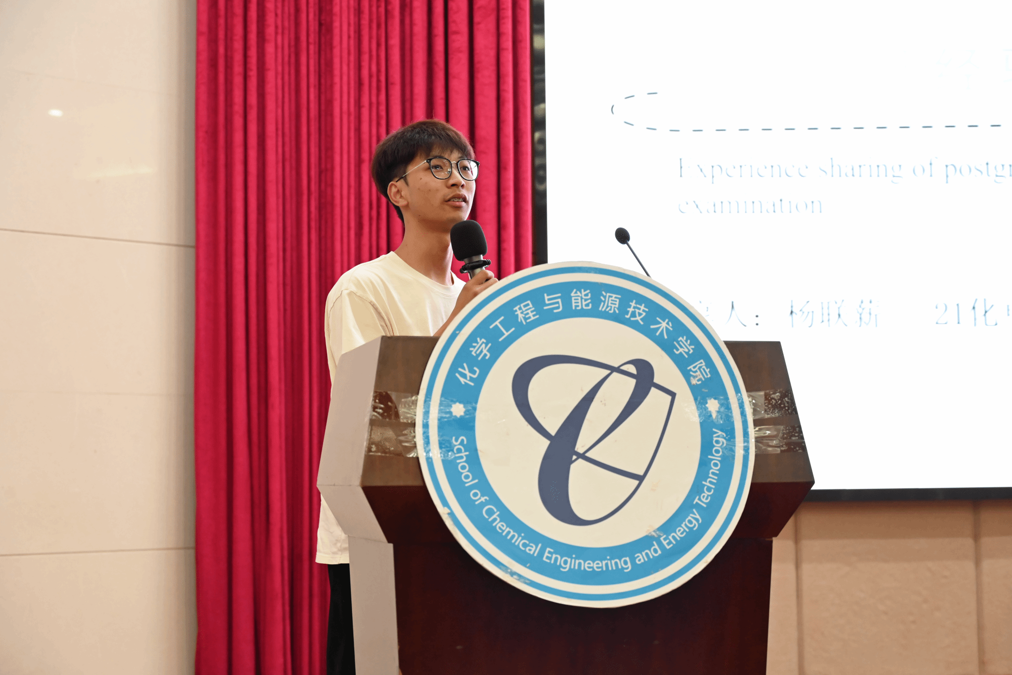 为进一步帮助2026届毕业生准确把握就业形势、科学规划职业发展路径,5月17日,化能学院在松山湖校区学术会议中心报告厅举办“职引未来:形势·选择·行动”2026届毕业生就业形势分析会暨考研动员会。化能学院党委副书记杨方、政治辅导员刘哲出席,学校“彩虹花”职业生涯辅导员工作室负责人、化能学院学工办主任袁志军老师和杨联新、邓文龙、戴华辉等3位考研上岸的同学受邀作就业指导及考研经验分享,学院2022级全体本科生参加会议。