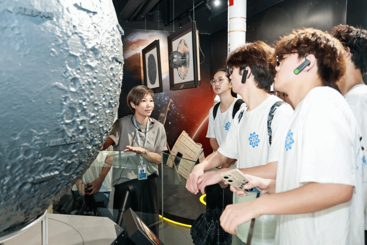 在漫月时光旅展区,陈列着与中国探月工程合作多年的钟表作品,得利钟表将航天人的逐梦精神融入腕表设计之中,使方寸表盘成为逐梦苍穹的缩影,让同学们对科技与文化融合的魅力有了更直观的认识。