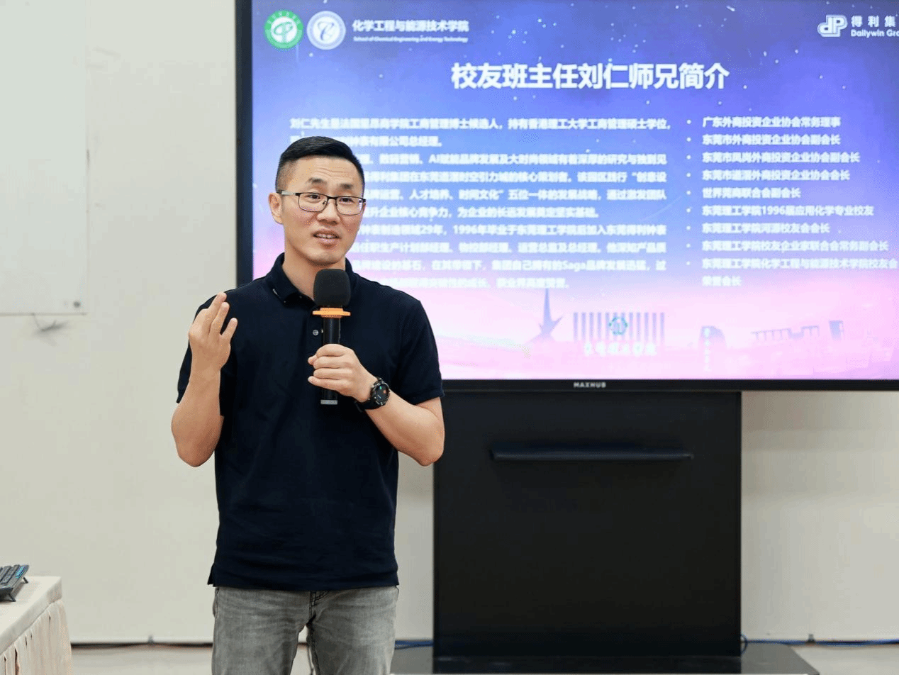 在交流分享环节,2024级应用化学卓越1班校友班主任、得利钟表有限公司总经理刘仁倾囊相授。他分享了自己从毕业求职到成长为行业精英的心路历程,谈及在生活与工作中遭遇困境时,如何做出抉择,并鼓励同学们珍惜大学时光,努力汲取知识养分,积极投身社会实践,锻炼综合能力。