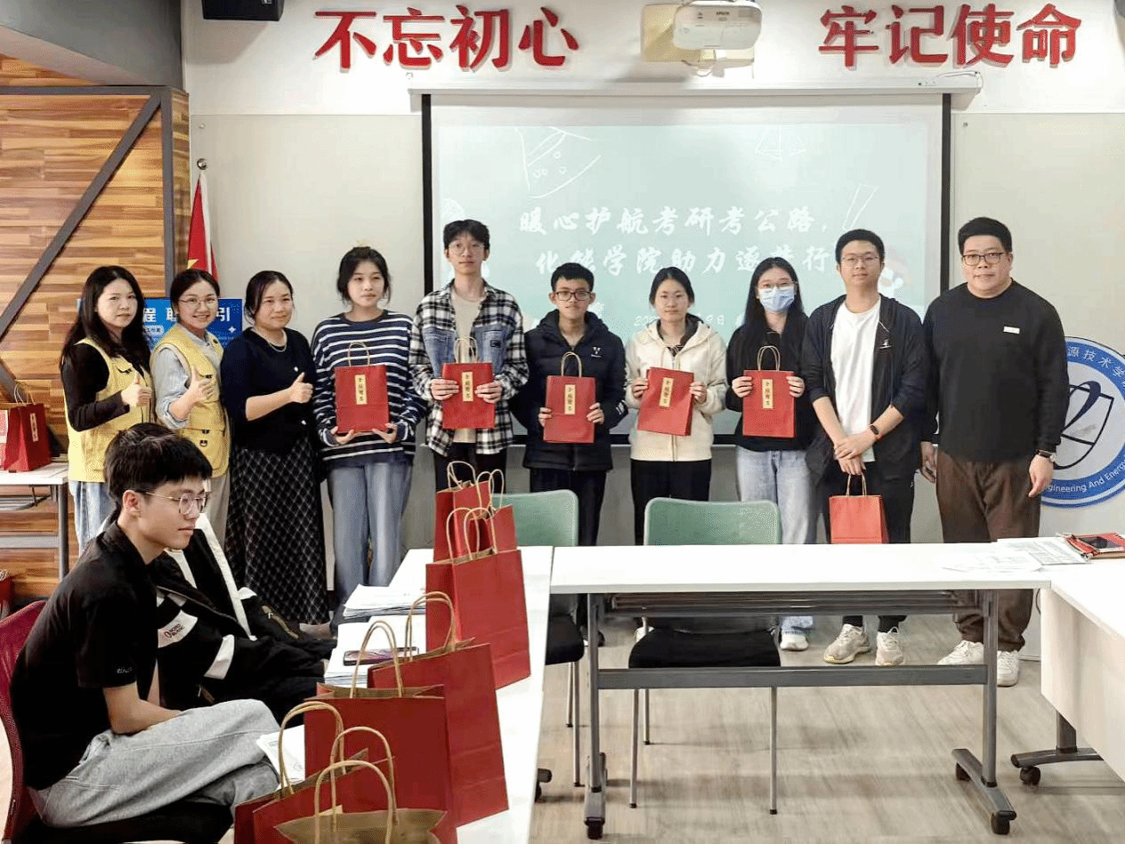2025年12月9日下午,化能学院联合学生社区莞雅社区、莞博社区开展考研学子慰问活动。化能学院党委副书记杨方、学工办主任袁志军、政治辅导员刘哲、班主任代表潘格川崎,通过座谈交流、发放暖心包、宿舍走访慰问等形式,为冲刺阶段的考研学子送上冬日的关怀与鼓励。