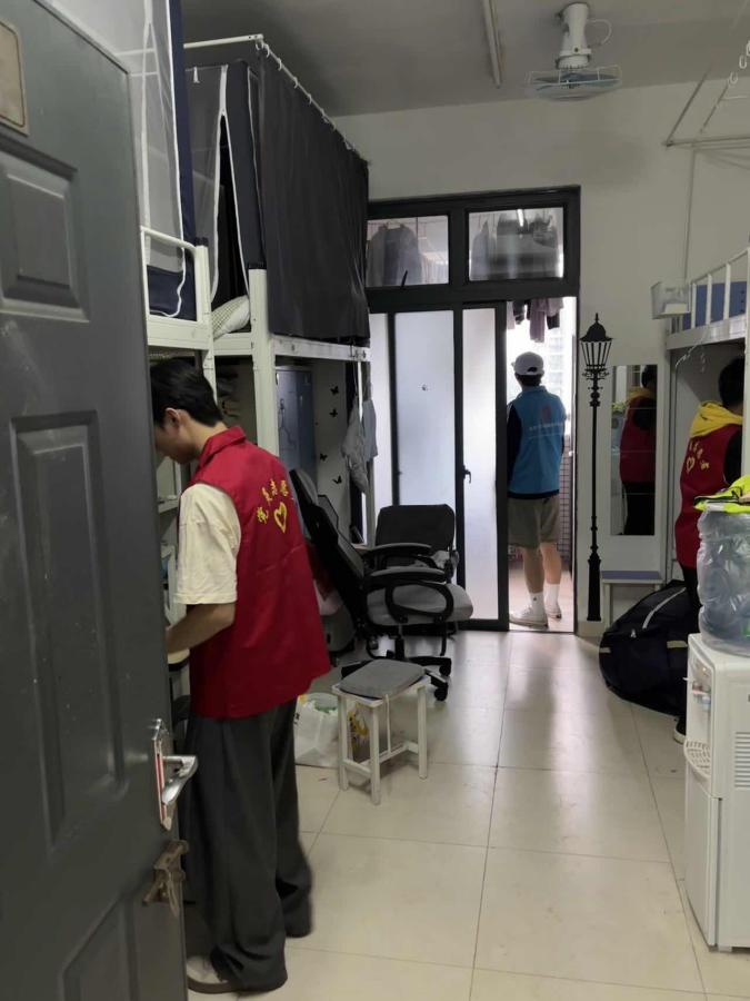 每日下午,由学院党员志愿者和班团骨干组成的检查小组分批集合,深入学院研究生宿舍及相关学生社区,开展排查与清理。志愿者们逐室走访,细致检查卫生死角,协助清理堆积杂物,并对阳台、洗漱间等区域的闲置花盆、水桶、托盘等易积水容器进行翻倒与清理,从源头上阻断蚊虫滋生条件。检查过程中,志愿者们还与留校同学面对面交流,普及个人防护知识,提醒做好健康自测,遇有异常情况及时上报。针对发现的问题,均通过拍照记录、即时反馈的方式督促整改,确保各项措施落到实处。