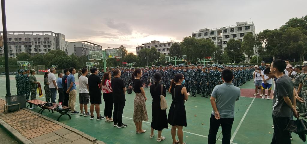 当日下午,学院党委书记夏勇、副院长尹辉斌、党委副书记李利平、学工办主任谢真葵、新生班主任和辅导员来到在体育馆篮球场,慰问2021级新生和五营的教官,并举行了表彰仪式。