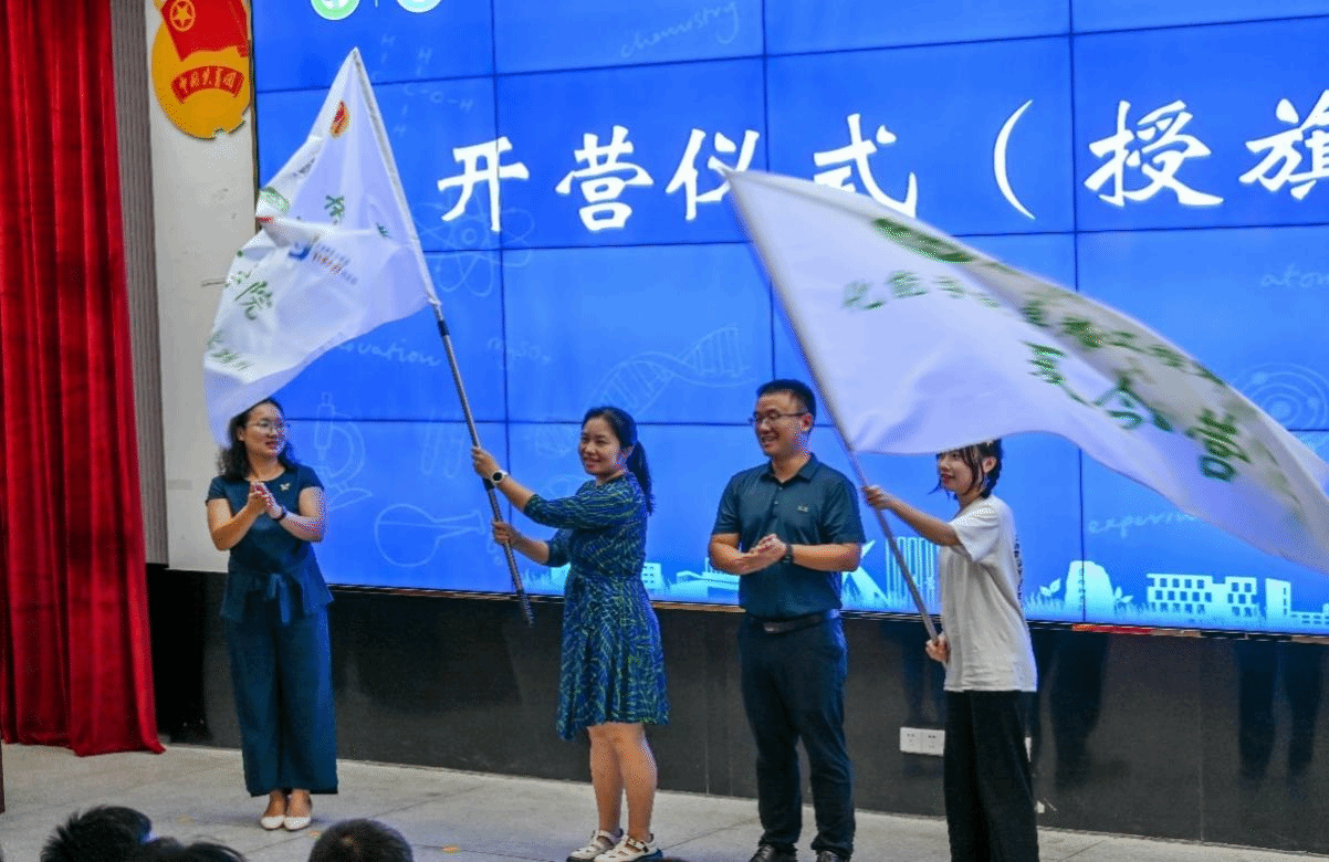 当日,化能学院校企合作实践基地的企业代表,来自东莞粤丰环保电力有限公司副总经理秦锡尧,化能学院党委副书记李利平、副院长张刚、何运兵以及学院各系负责人、指导老师出席开营仪式并观摩竞赛。开营仪式由张刚主持。李利平和何运兵分别为夏令营负责人代表授社会实践调研队旗和夏令营营旗。