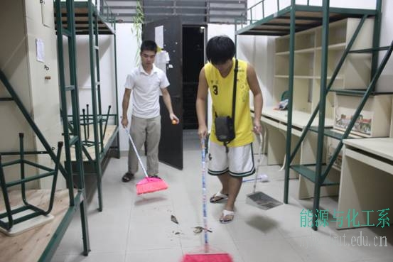 9月21日晚上8时,志愿者们来到新生们所住的13栋宿舍,看着地上的垃圾与灰尘,不顾一天的劳累,有的志愿者挥舞帚把清洁地面,有的志愿者们拿起了抹布拭走桌面的尘土。经过志愿者们一晚的辛勤劳动,原本脏兮兮的宿舍地面、床板、桌面都焕然一新。虽然非常疲惫,但是想到刚刚加入能源与化工系的新生们会住得更舒心惬意,志愿者们仍是感到非常开心。