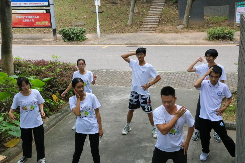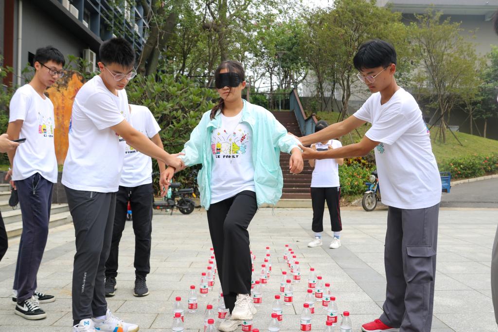 在“舞王争霸”游戏环节比赛,学员分成若干个小组进行舞蹈的学习,在短时间且高压的舞蹈学习目的是提升抗压能力及社交能力,面对不熟悉的新队友,高效的交流是完成任务的必要条件。在定向越野比赛中,学员们通过纸条的关键词判断任务地点,通过熟悉校园,提高与同伴间的默契和毅力。