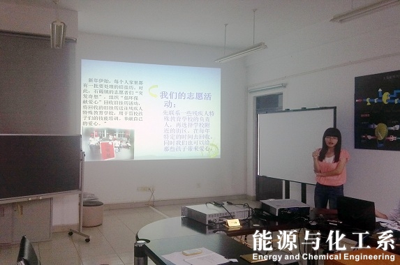 晚上8:00,干事们首先以抽签的形式来确定出场的顺序。接着站长分发评分表给每一位干部和干事,其中各位干事不参与自身表现的评分。8:30,活动正式开始,干事们依次上台展现自己制作的“2012-2013年志愿活动回顾电子相册”或“专项志愿服务队活动方案PPT”,并伴与特色的个人演讲。活动中,干事们表现得都非 常优秀。其中,参加PPT展示的干事们深刻研究了东莞市志愿服务需求严重的领域,并阐释了我们可以针对这些领域开展的志愿活动,这对能源与化工系志愿服务站的专项志愿服务队活动方案有重要的指导意义;而在电子相册展示过程中,伴随着干事们真挚的演讲和其自信的表现,我们细细回忆起了过去一学期我系志愿服务站开展的志愿活动,全场充满浓厚而感动的气氛。最后我们收齐所有的评分表并进行统计分数,颁奖仪式将会在下次例会时进行。