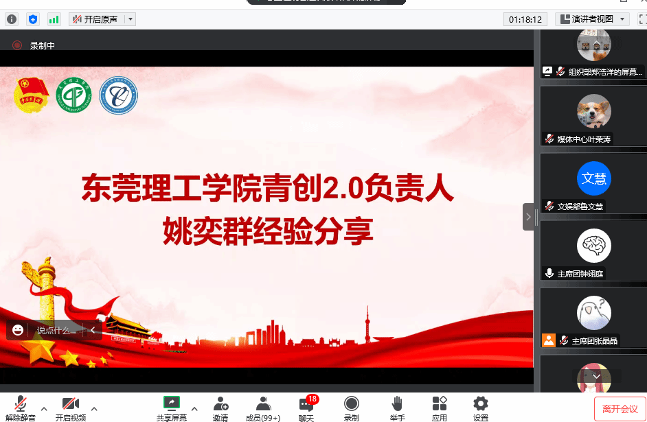本次会议王馨老师以“闪亮青春,点燃时代之光”为主题向大家授课。会上,王馨老师首先带领大家学习习近平总书记在庆祝共青团成立100周年大会上的重要讲话精神,共同回顾共青团成立一百年来的奋斗历程,深切感受习近平总书记对青年一代的亲切关怀和殷殷嘱托。在党的坚强领导下,共青团不忘初心、牢记使命,组织一代代青年砥砺奋斗,锐意进取,成为党可靠的忠实助手和后备军。