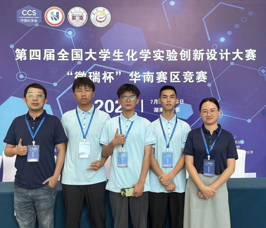 7月26-28日,由中国化学会、教育部高等学校国家级实验教学示范中心联席会主办,湖南大学和吉首大学承办的第四届全国大学生化学实验创新设计大赛“微瑞杯”华南赛区竞赛成功举办,来自华南地区51所高校、90支队伍、共300余名师生参加。我院首次组织队伍参赛,并荣获三等奖的好成绩。