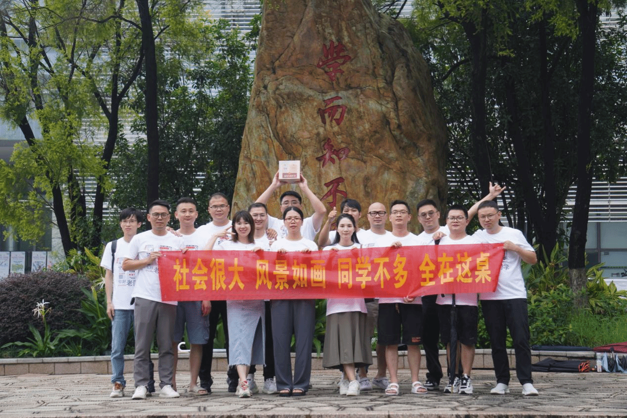 雨丝不断,情谊绵绵;拨云见日,未来可期。活动最后,众校友高举十年之约的信箱在校训石前合影留念。