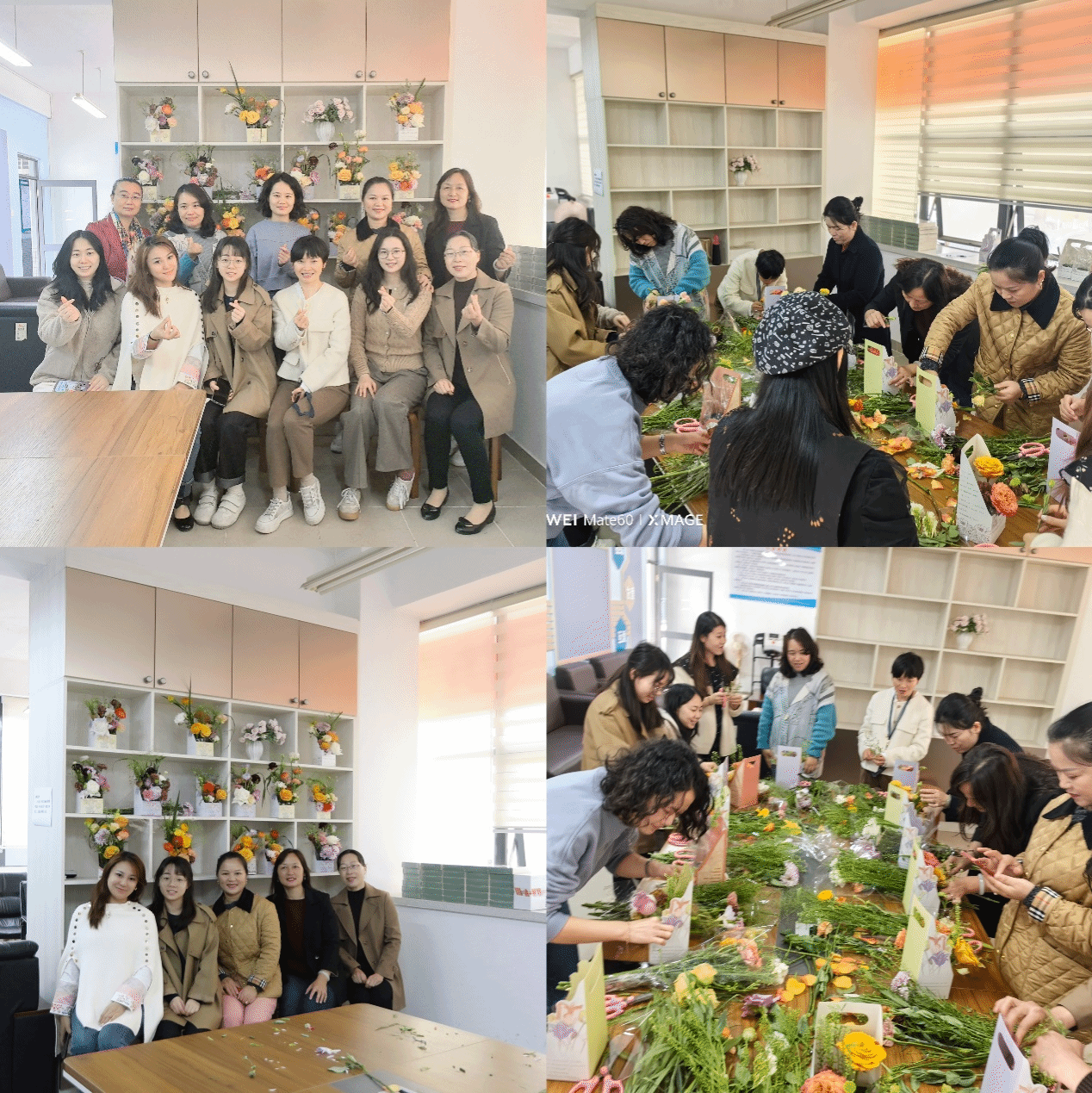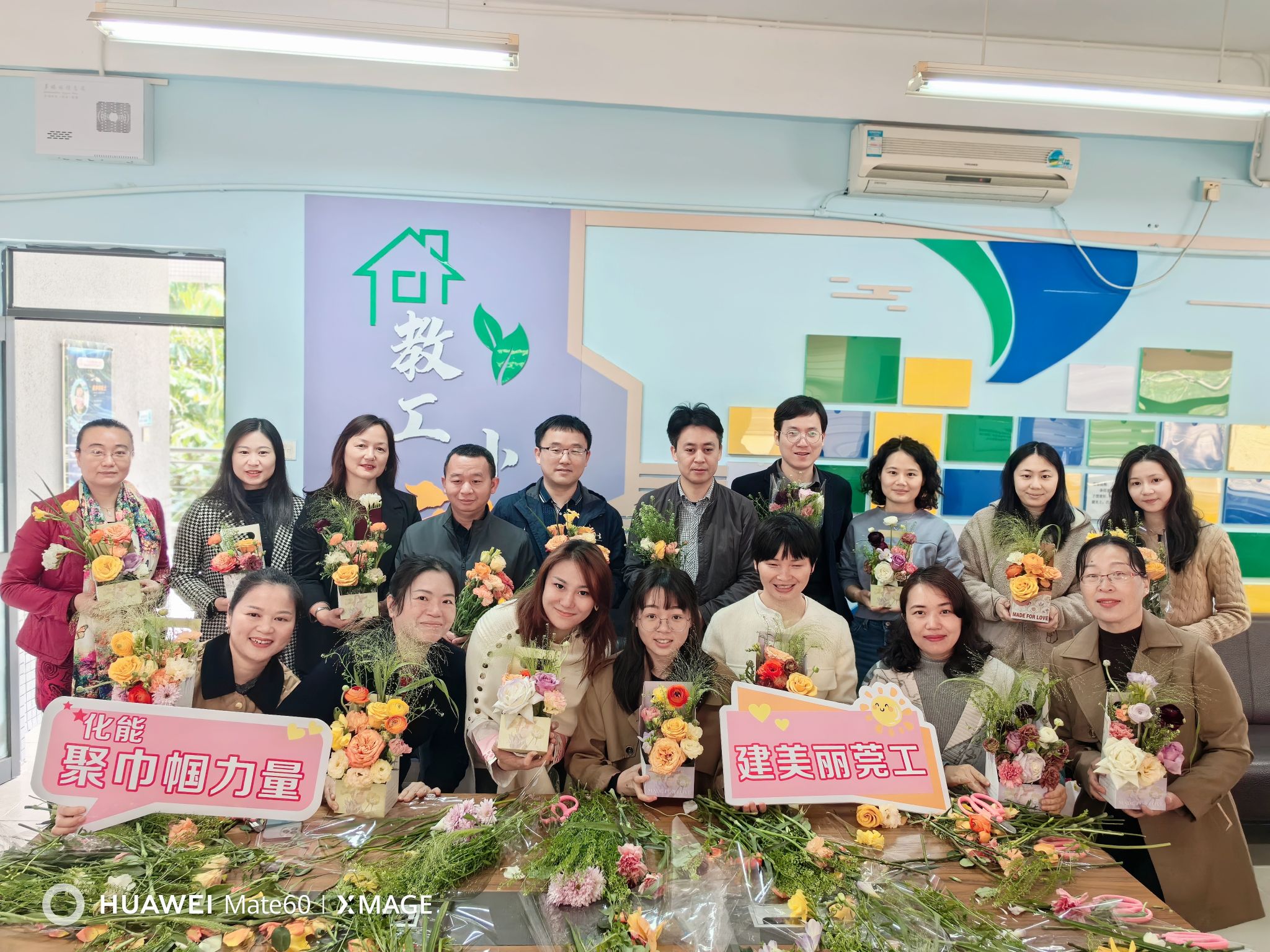 在第114个国际妇女节来临之际,化能学院分工会组织学院女教职工在教工小家开展“聚巾帼力量 建美丽莞工”活动。为活跃学院文化氛围,陶冶职工情操,本次活动为体验传统插花艺术,并邀请了专业花艺老师现场教学。女教职工们在花艺老师的带领下,结合各自手中的鲜花特点和审美情趣,一边交流一边实践,现场氛围轻松而愉快。