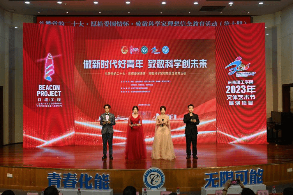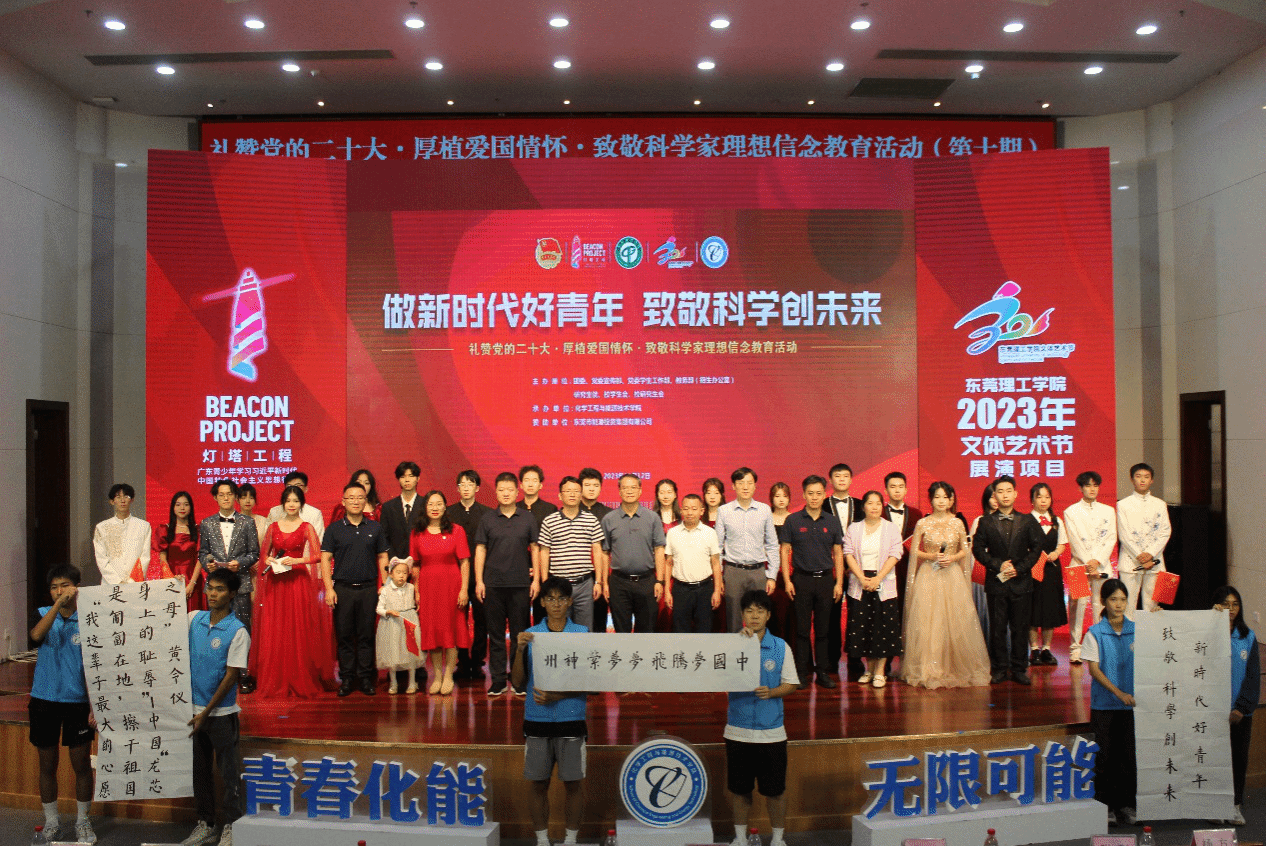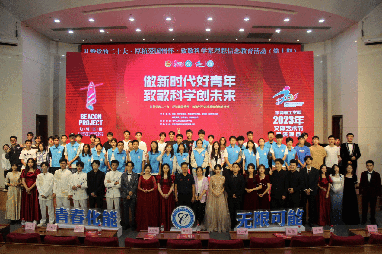 2023年“灯塔工程”6776永利集团青年大学生思想政治引领精品项目、文体艺术节展演项目之“礼赞党的二十大•厚植爱国情怀•致敬科学家”理想信念教育活动第十期于11月12日晚在学术会议中心阶梯报告厅举行。本次活动由学校党委宣传部、党委学生工作部、团委、教务部(招生办公室)、研究生院、校学生会、校研究生会共同主办,yl6776永利集团承办。化能学院党政领导班子以及企业嘉宾东莞市能源投资集团有限公司、东莞海丽控股集团有限公司负责人出席,化能学院师生代表等400多人参加活动。