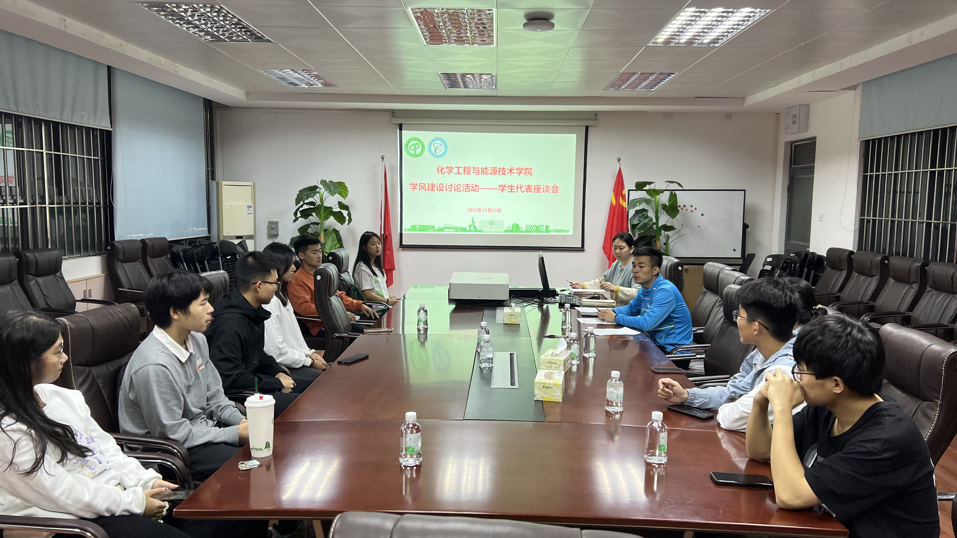为进一步推动学院学风建设,营造良好的学习氛围,发挥朋辈互助作用,助力学院发展,2023年11月23日,化能学院组织召开学风建设学生代表座谈会。会议由学工办负责人、政治辅导员谢真葵主持,政治辅导员王馨、黄千恩,部分学生代表参加。