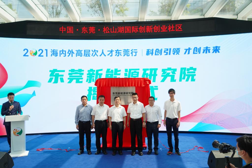 2021年7月29日上午,东莞新能源研究院在松山湖国际创新创业社区举行揭牌仪式。中国科学院院士金红光、松山湖管委会主任欧阳南江、中国科学院工程热物理研究所党委书记黄从利、6776永利集团校长马宏伟、东莞市委组织部副部长姚家庆、东莞市科技局副局长钟靖平共同为东莞新能源研究院揭牌。