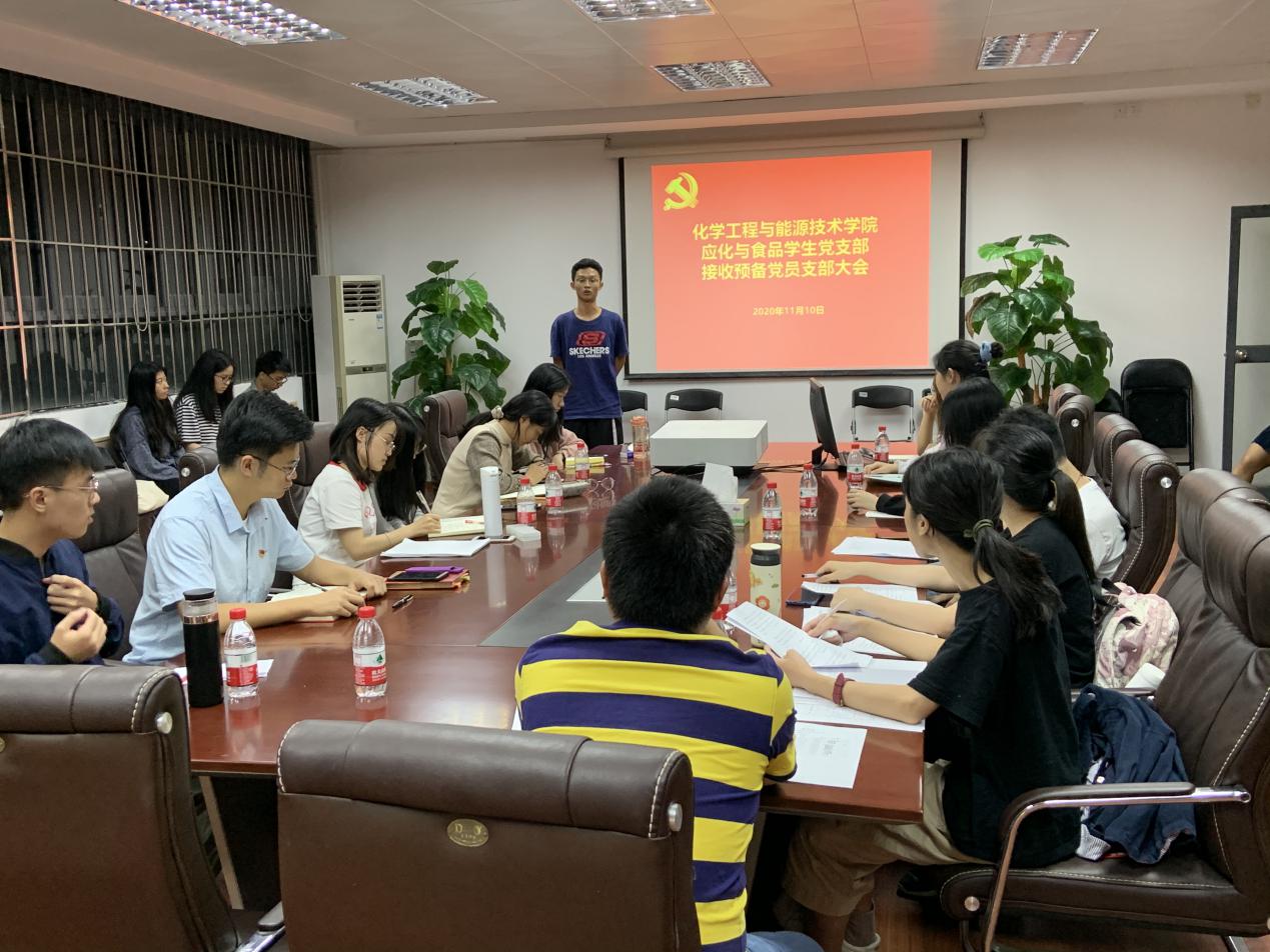 2020年11月10日,yl6776永利集团应化与食品学生党支部于12L103会议室顺利召开了本学期接收预备党员支部党员大会。会议由支部书记张博主持,全体学生党员参加了本次会议。