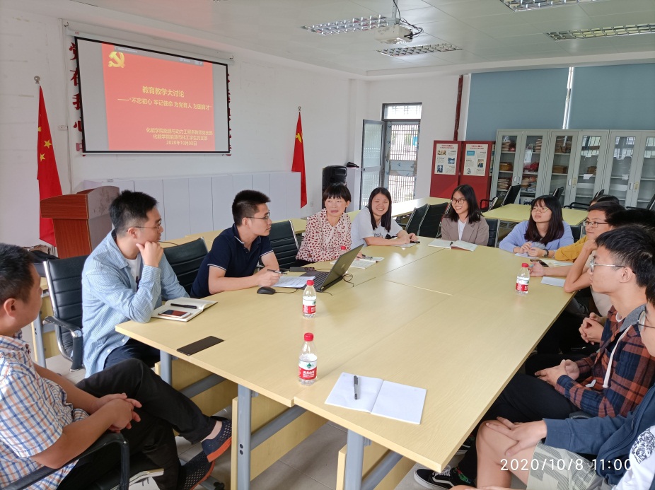 落实“三全育人”、建设一流本科,是新时代中国特色社会主义高等教育的生动实践,是全面提高人才培养质量的迫切要求。10月8日上午,化能学院能源与动力工程系教师党支部与能源与化工学生党支部在机电楼12L-102会议室开展结对共建主题党日活动,主题为“落实三全育人、建设一流本科”教育教学大讨论。本次活动由能源系支部书记何清同志和学生支部涂叶满同志共同主持。