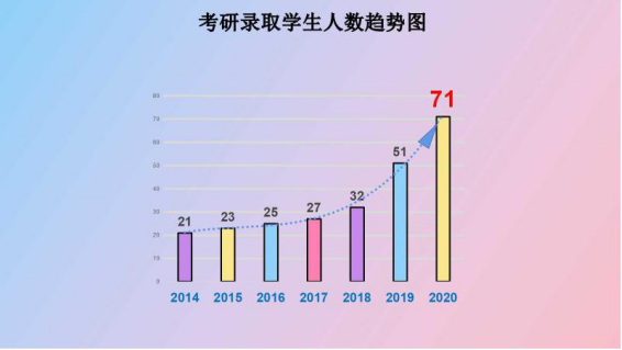 近期,2020年研究生录取工作已收官,化能学院学生考研成绩今年持续向好,再创新高。71名学生成功考取硕士研究生,其中化学工程与工艺专业考取18人,能源与动力工程专业考取6人,应用化学专业考取14人,应用化学(食品质量检测)考取6人,应用化学(卓越计划班)考取13人,应届毕业生录取比率达到13.4%,另有14名往届学生被录取。