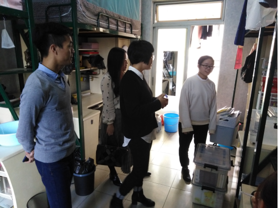 走访过程中,老师们详细询问了同学们的生活情况,在假期是否有不便,并代表化能学院表达了对留校同学的关心和问候;还仔细检查了每间宿舍的用电安全情况,并嘱咐留校学生要遵守社区管理规定,注意用电安全、人身和财产安全,妥善保管贵重物品。
