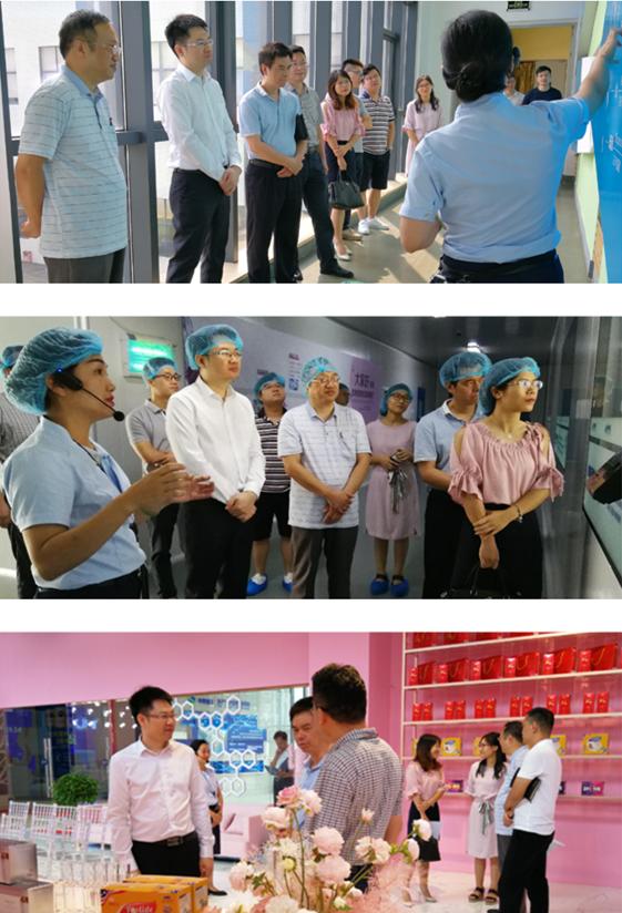 揭牌仪式结束后,陈佰满副院长一行参观了中食营科生产区(食源性低聚肽生产线、口服液生产线、功能营养食品生产线)以及中食营科产品展示厅。