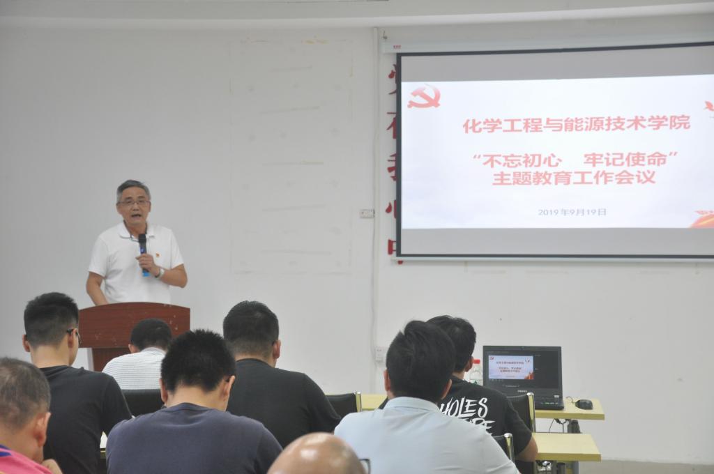 学院党委书记夏勇传达了学校主题教育动员部署会议精神,以及成洪波书记的讲话精神,介绍了化能学院主题教育实施方案,部署我院学习教育安排,并强调:这次主题教育的根本任务是要深入学习贯彻习近平新时代中国特色社会主义思想;总要求是全面把握守初心、担使命、找差距、抓落实;抓好学习教育、深入调查研究、认真检视问题、从严整改落实,努力实现理论学习有收获、思想政治受洗礼、干事创业敢担当、为民服务解难题、清正廉洁作表率的目标。要求根据校党委工作部署,在学院全体党员中组织开展主题教育活动。本次主题教育活动从2019年9月开始,11月底基本结束。本次主题教育不划阶段、不分环节,要求把学和做结合起来,把查和改贯通起来,有机融合、贯穿始终。通过学习教育、调查研究、检视问题,着力解决基层党组织建设、教育教学工作、学科建设工作、教师队伍建设、意识形态工作、学生社团工作等工作中存在的突出问题,努力实现主题教育的各项目标要求,确保主题教育深入扎实推进,取得实实在在的效果。