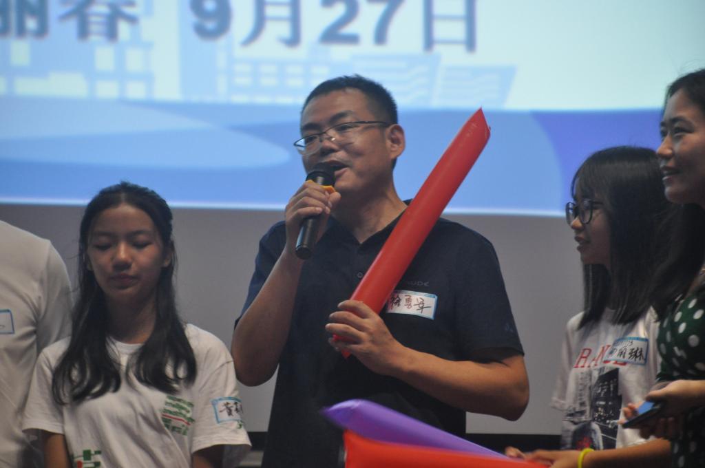 一开场便是YMCA协会带来了时尚舞台走秀,几位风格各异的高颜值女生让人眼前一亮。要说全场最好玩的节目,当属《兔子舞》无疑。领舞人先是上台示范了兔子舞的跳法,随后,老师、助班们开始踢踢踏踏,手扶前面的人的肩膀,一蹦一蹦地跳起兔子舞。现场有近80%的人加入了兔子舞的队伍,一条长长的队伍在学术会议中心的多功能厅转了三层同心圈,如同一条长龙。