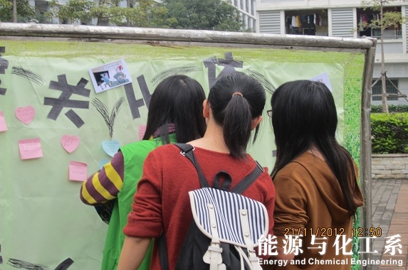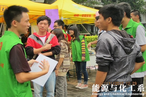 2012年12月21日,为增强各位同学对残疾人生活了解,引起大家对对残疾人的同情和关爱,使更多的人自觉去帮助残疾人,能源与化工系志愿服务站在下沉广场组织了以‘‘关爱残疾人,从体验残疾做起’’为主题的残疾体验活动。